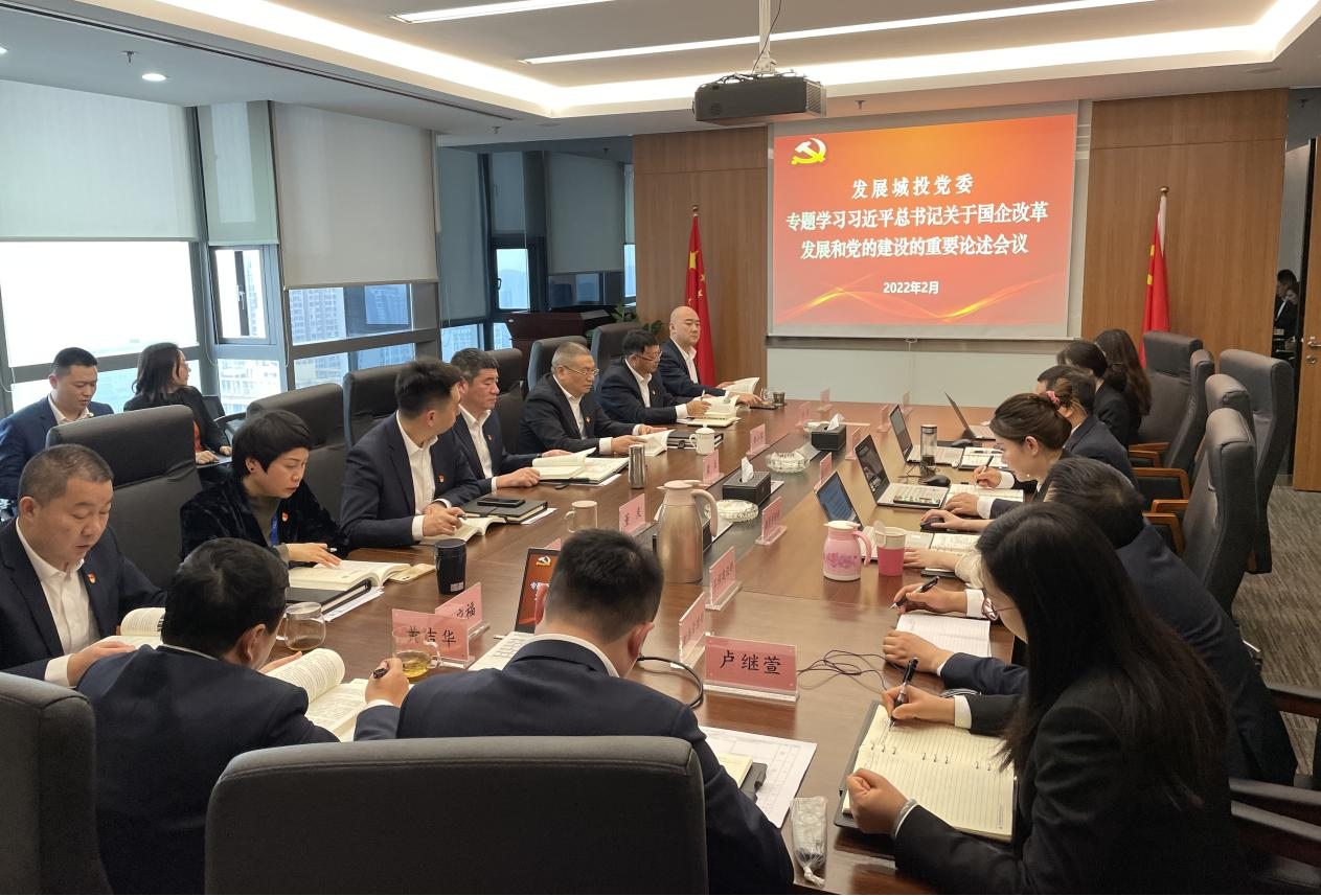 为进一步推动公司国企改革三年行动走深走实,强化政治引领,筑牢思想根基,2月21日上午,发展城投党委组织召开专题会议,学习习近平总书记关于国企改革发展和党的建设的重要论述,公司党委书记、董事长糜兵同志主持会议,公司领导班子成员、中层管理干部、各直接出资企业负责人及全体党员参加会议。