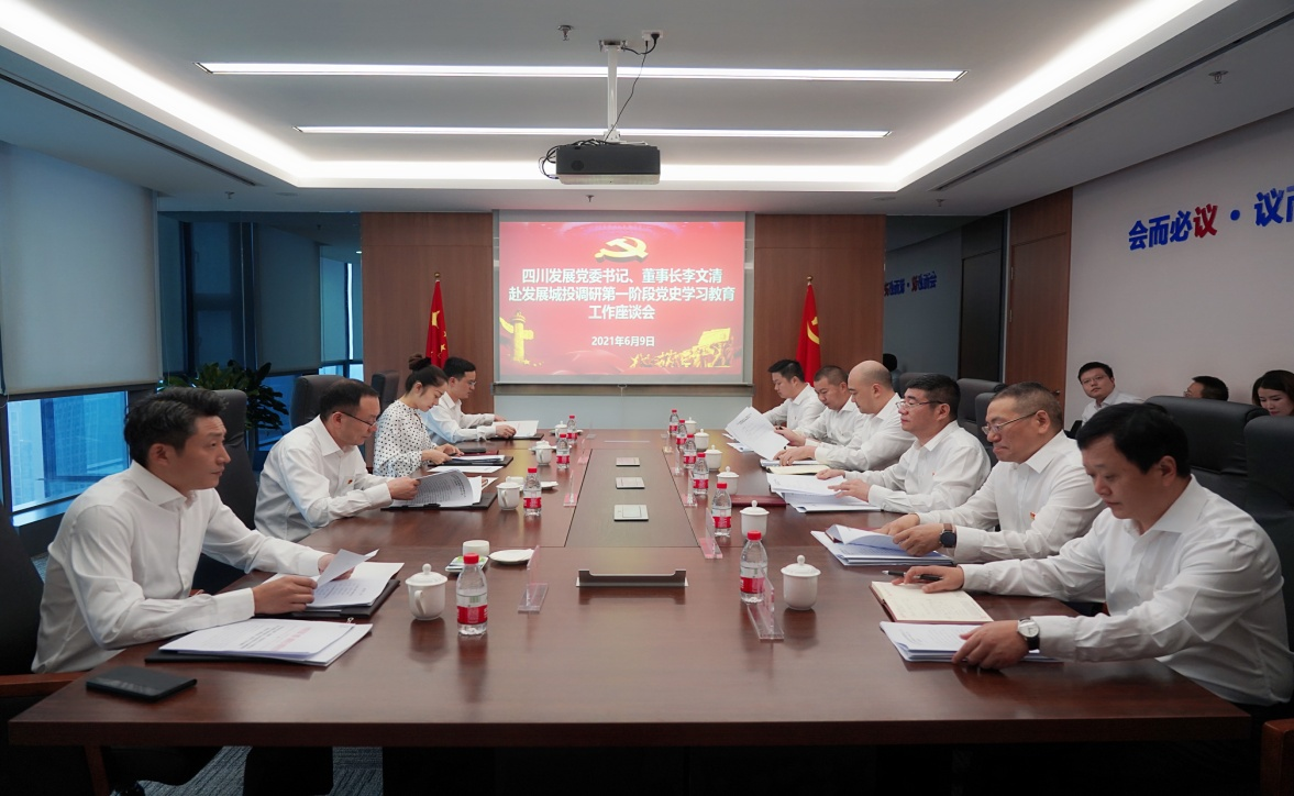 按照《中共四川发展(控股)有限责任公司委员会关于开展公司领导班子成员赴联系企业调查研究党史学习教育第一阶段工作的通知》相关要求,6月9日,四川发展党委书记、董事长李文清到联系企业发展城投调研党史学习教育第一阶段工作开展情况。四川发展党委副书记、董事刘嘉陪同调研。